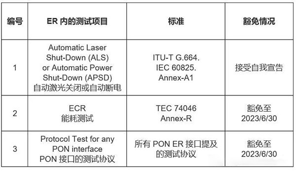 2、PON類別ER中能耗測(cè)試項(xiàng)目(ECR)的豁免